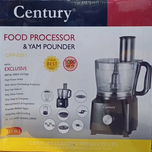 The Century Food Processor and Yam Pounder CFP-8251 is here to revolutionize your kitchen experience! With its powerful motor and sharp blades, this versatile kitchen appliance makes meal prep a breeze. Whether you’re chopping vegetables or making smooth yam mash, this food processor has you covered.