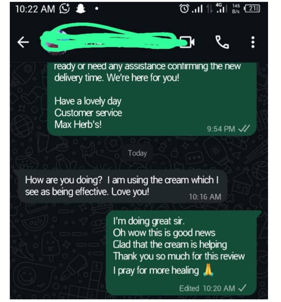 “I only have tried this cream for less than a week for my back pain & I’m amazed by the results; it cool my back and feel good! I’m amazed how it works; now I don’t need to have surgeries for my annoying back pain!” – Bleesing
